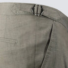Il color greige, uno stiloso grigio tendente al beige, in tela di lana Vitale Barberis Canonico, rende questo pantalone fresco; molto facile da abbinare, unito alla costruzione retrò con le due pinces alla francese e le fibbiette laterali, potrà essere la vostra base per un outfit ricercato.