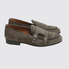 Scarpa Loafer Doppia Fibbia in Pelle Scamosciata Color Taupe