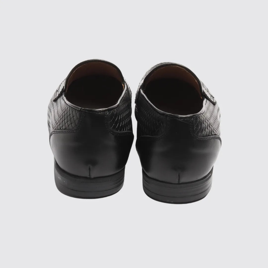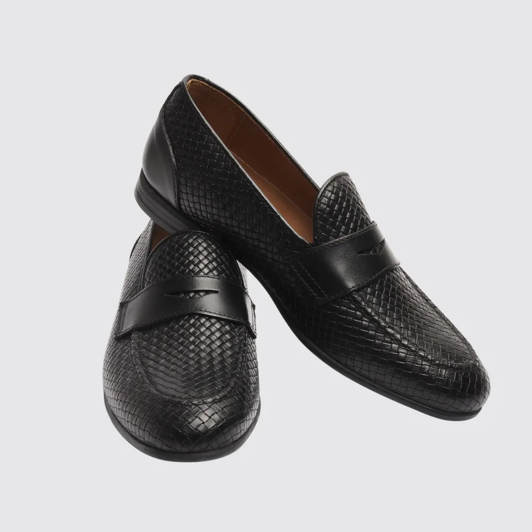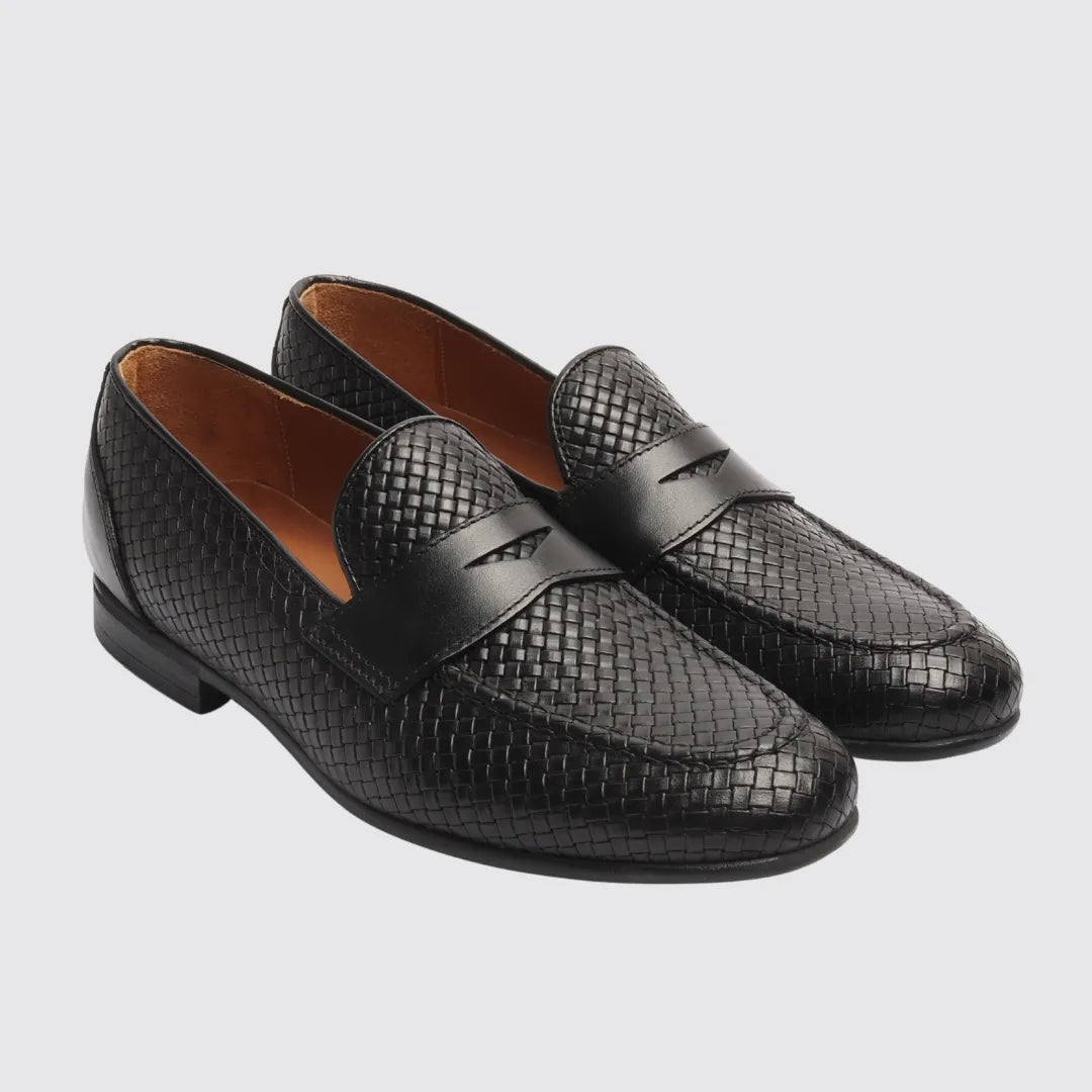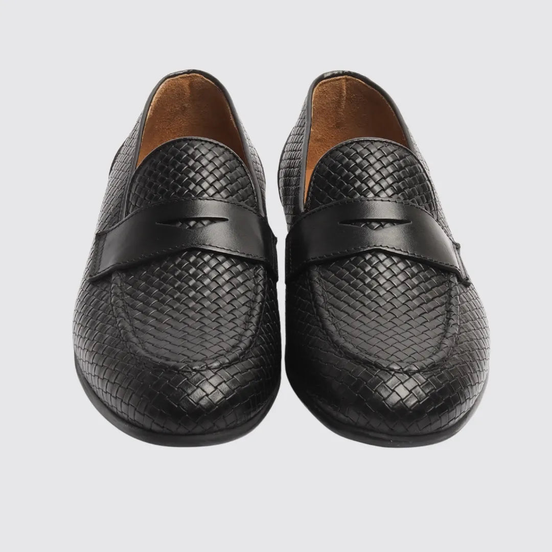 Scarpa Loafer in Pelle di Vitello Intrecciato Color Nero