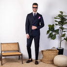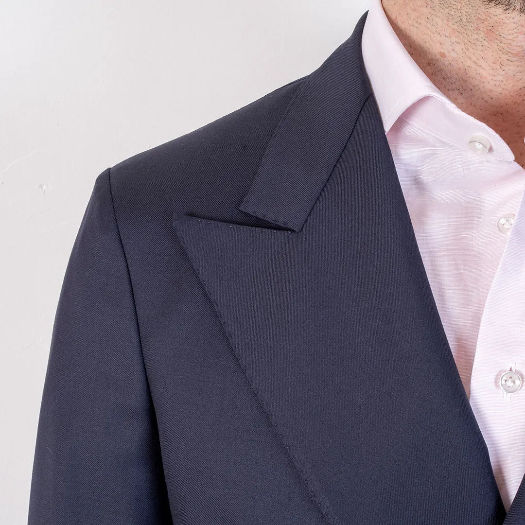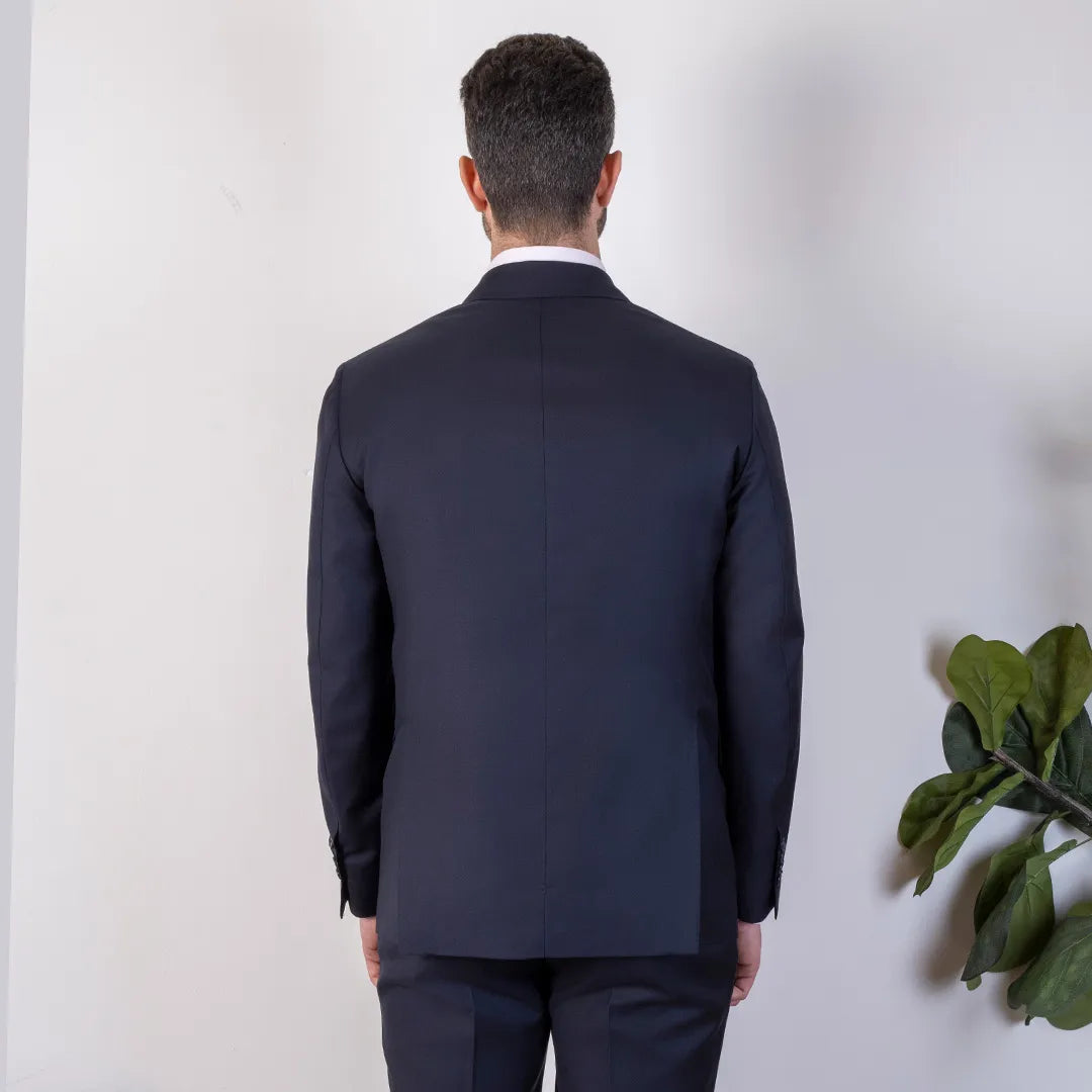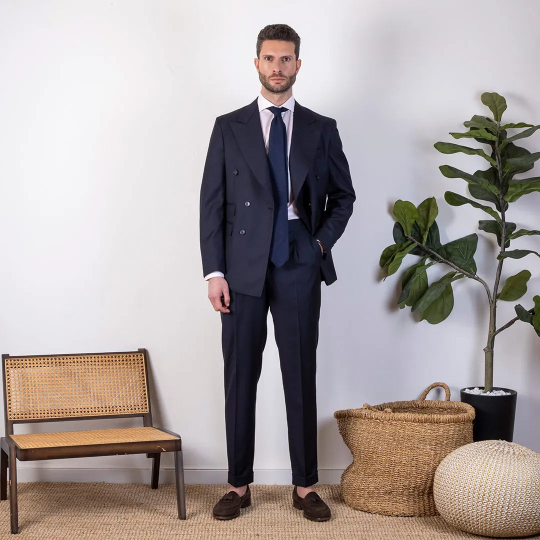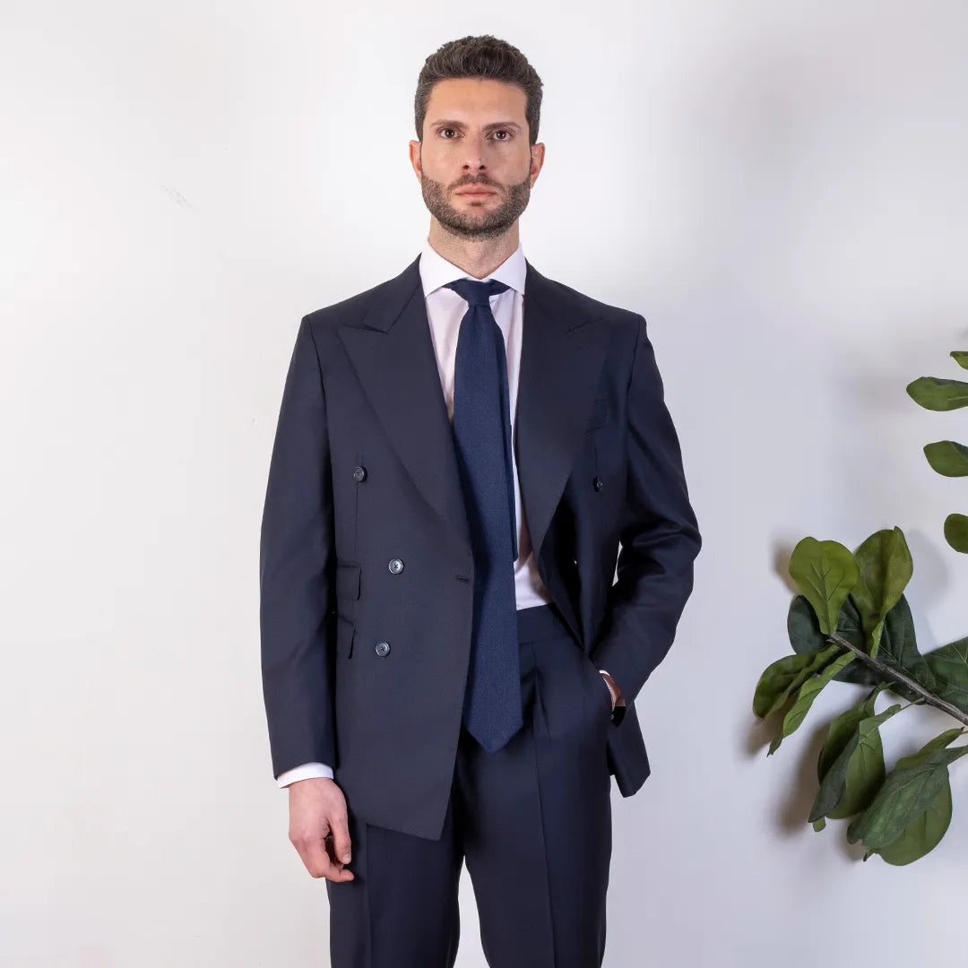 Double Breasted Tailored Suit in Tasmania Super 120's Wool - Dark Blue - Made in Italy