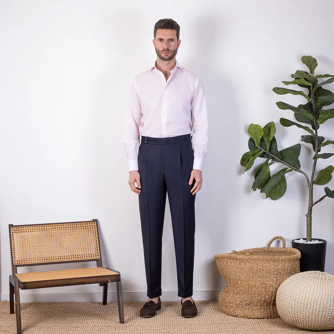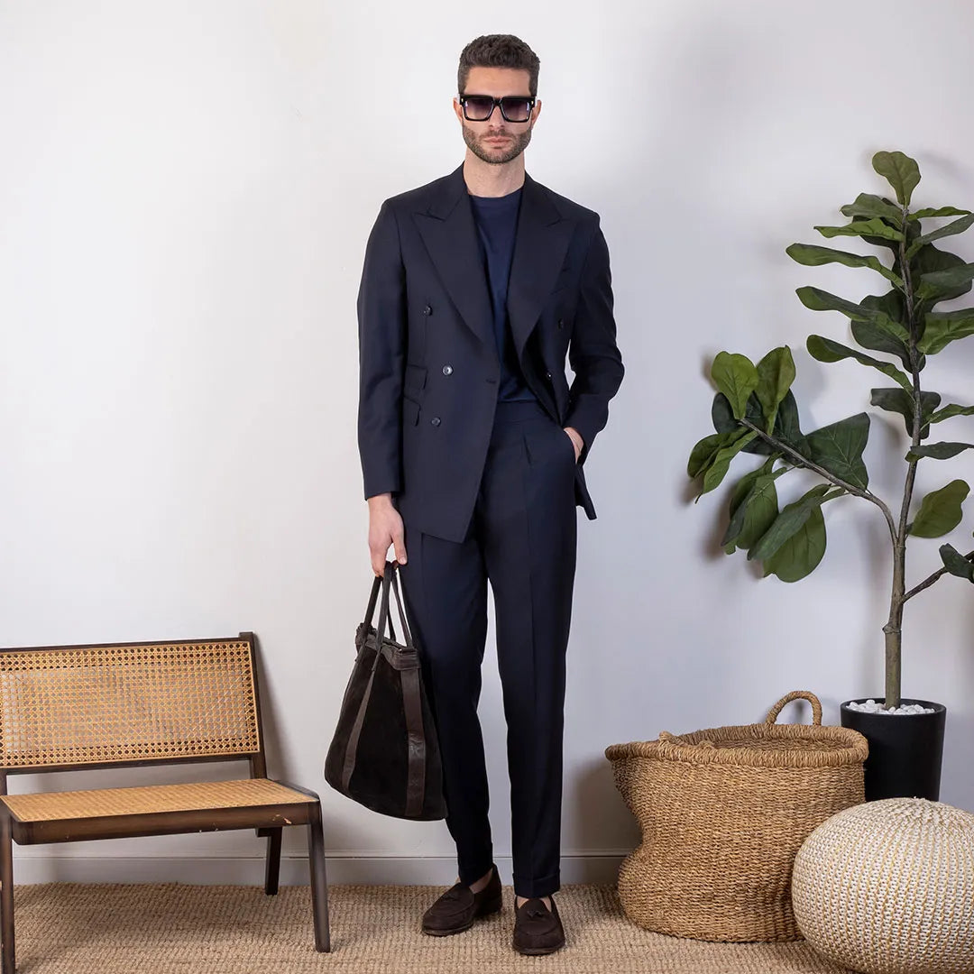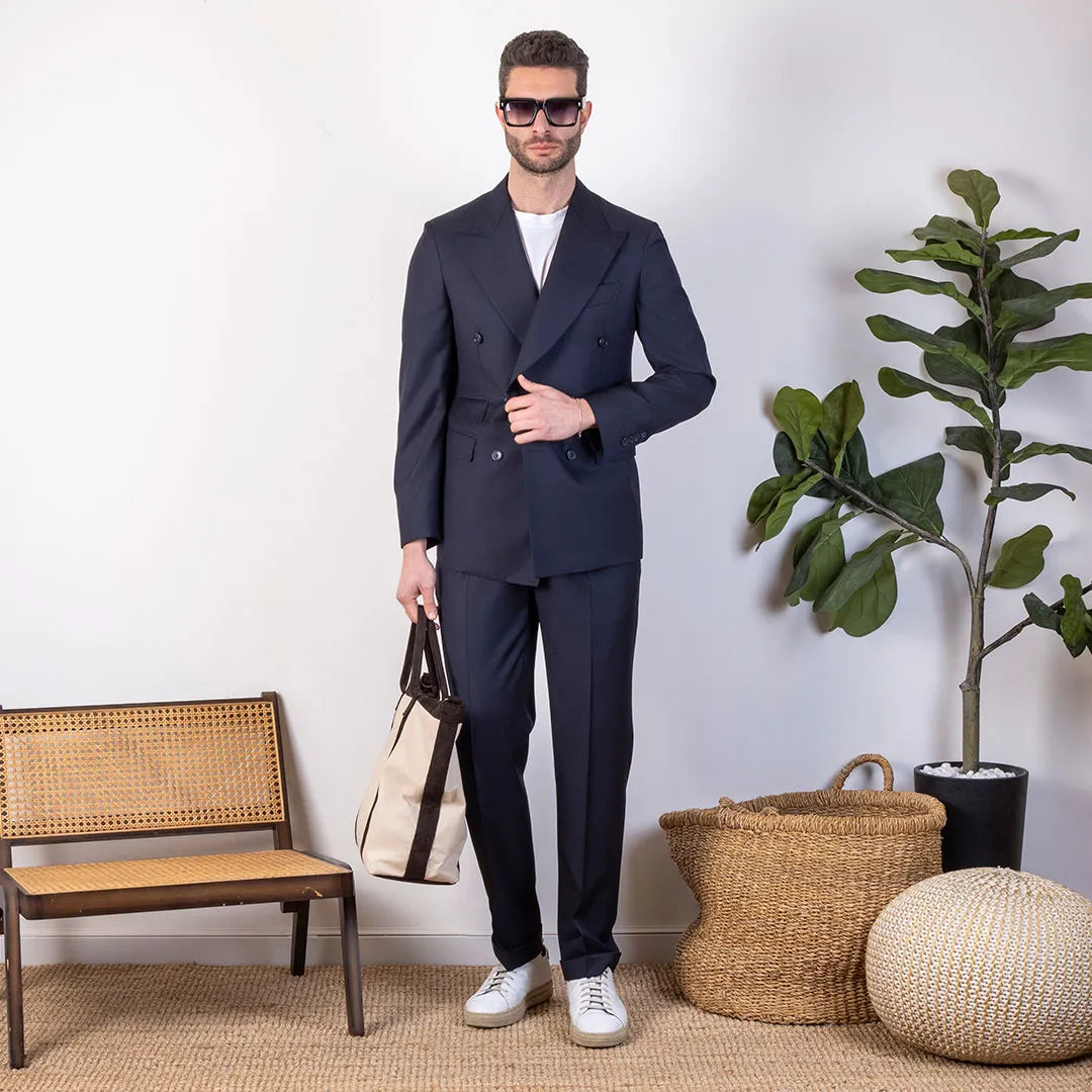 Timeless elegance embodied in a garment with a strong character. The Dark Blue Double-Breasted Tailored Suit is crafted from 100% Super 120's Tasmanian wool , a premium fabric that combines refinement , lightness and comfort in every season. The double-breasted design, combined with the semi-canvas construction and the Iconic Vesuvio trousers, creates a suit that is perfect for special occasions and stylish everyday commitments.