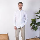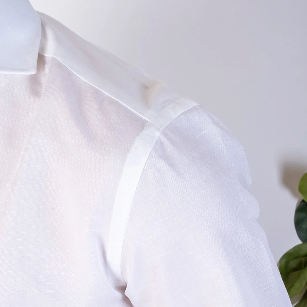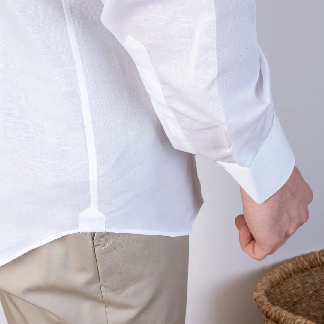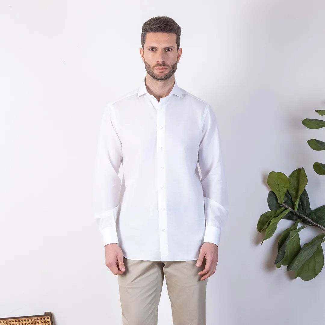 An essential and versatile shirt, designed for the man who seeks casual elegance and artisanal quality. Crafted from a fine blend of cotton and linen , it combines lightness and breathability with impeccable structure. The French collar and rounded cuff give a tailored touch, making it perfect for both formal outfits and more relaxed occasions.