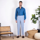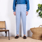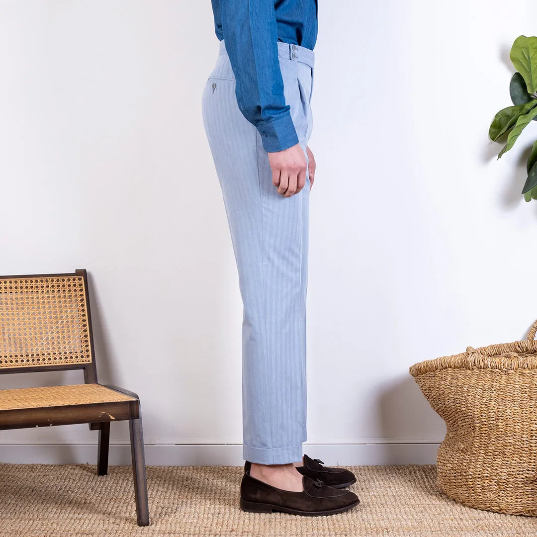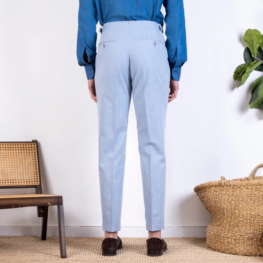 Vesuvio Tailored Trousers in Herringbone Cotton Larusmiani - Powder Blue - Made in Italy
