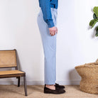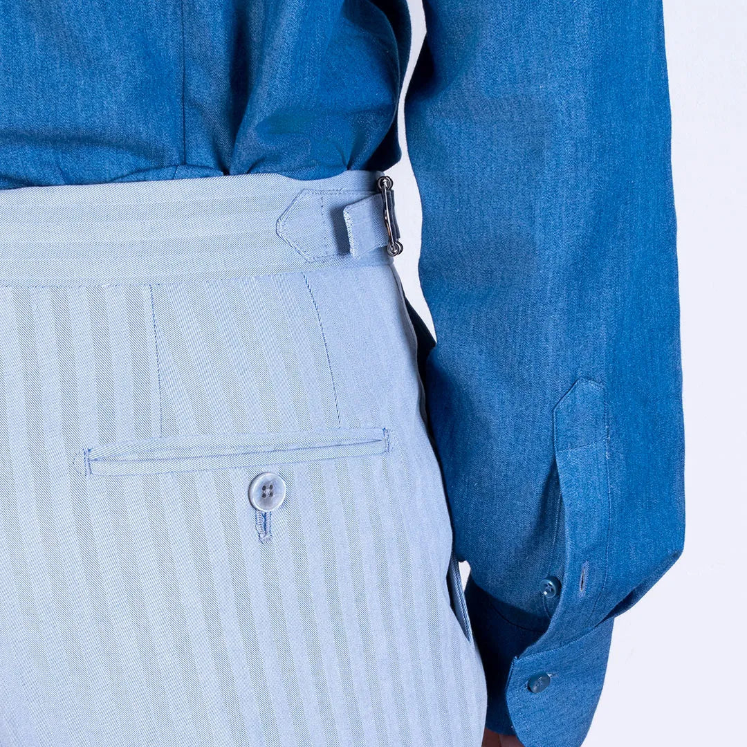 Fresh, light and timelessly elegant, the powder blue Vesuvio tailored trousers are made of Larusmiani herringbone cotton , a quality fabric perfect for facing the spring-summer season with style. The particular herringbone texture recalls the solaro effect, giving depth to the colour and a refined look.