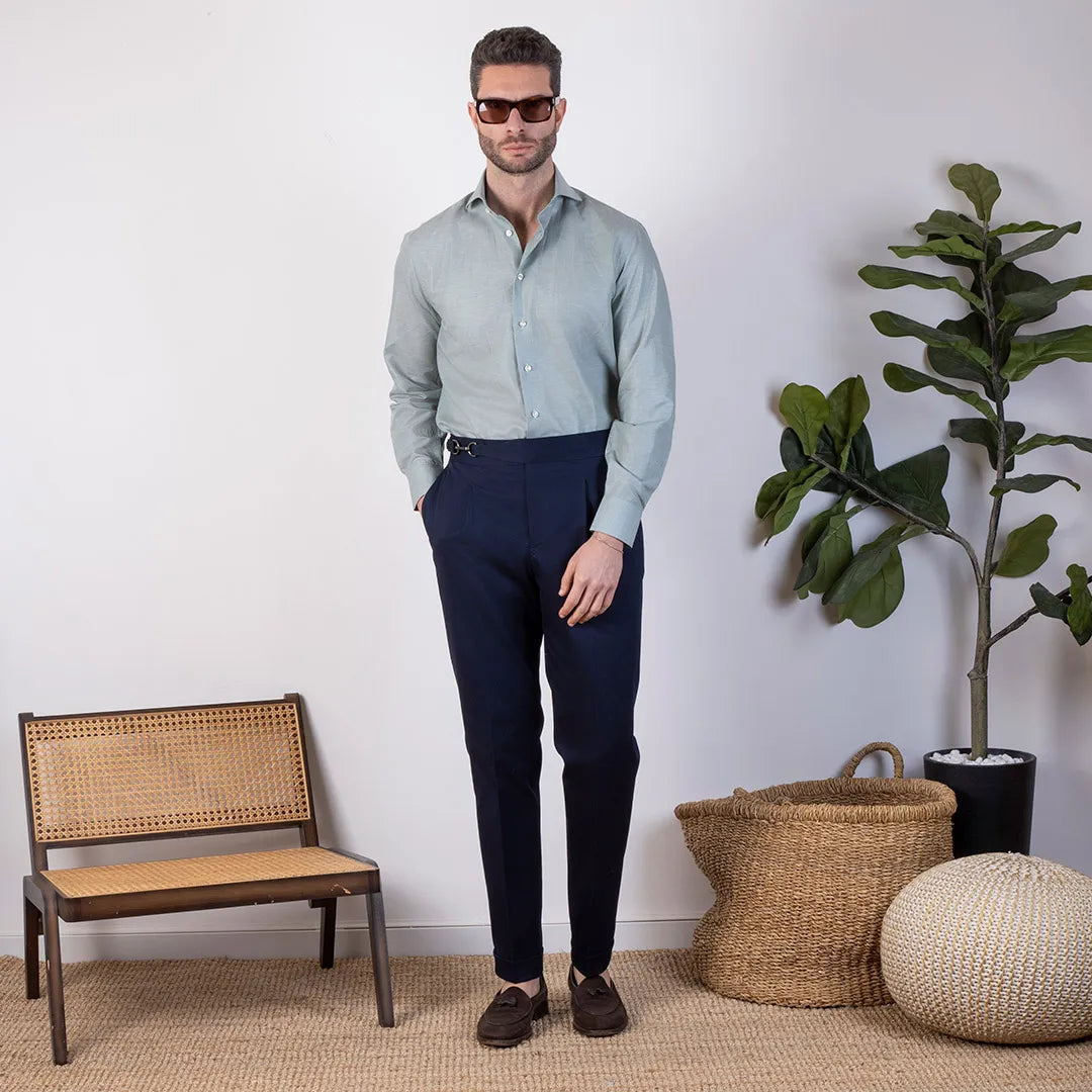 Ideal for creating sophisticated and versatile looks, it pairs perfectly with cotton or denim shirts, polos or t-shirts , and can be completed with loafers or sneakers . For a more elegant touch, it is perfect with a solid or patterned blazer .