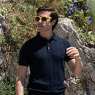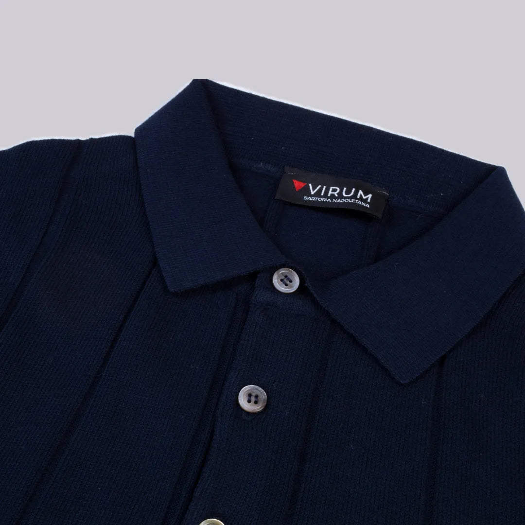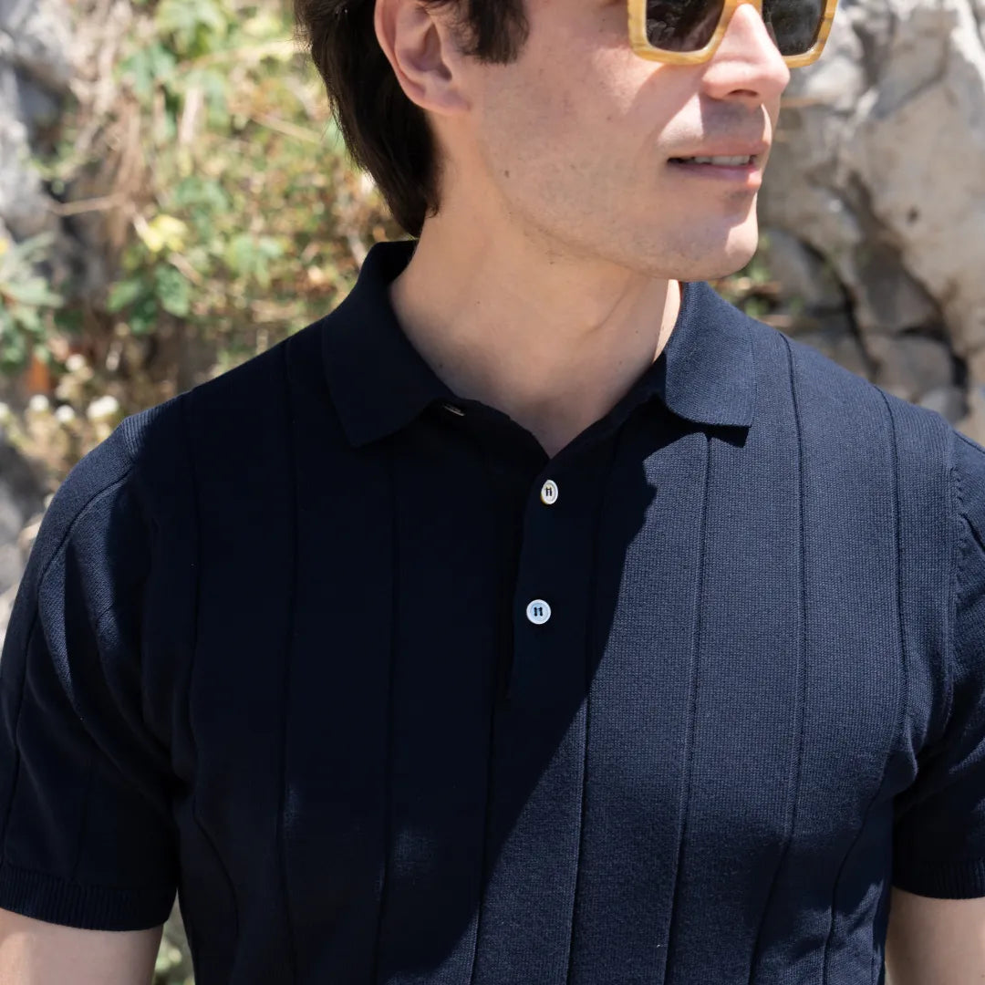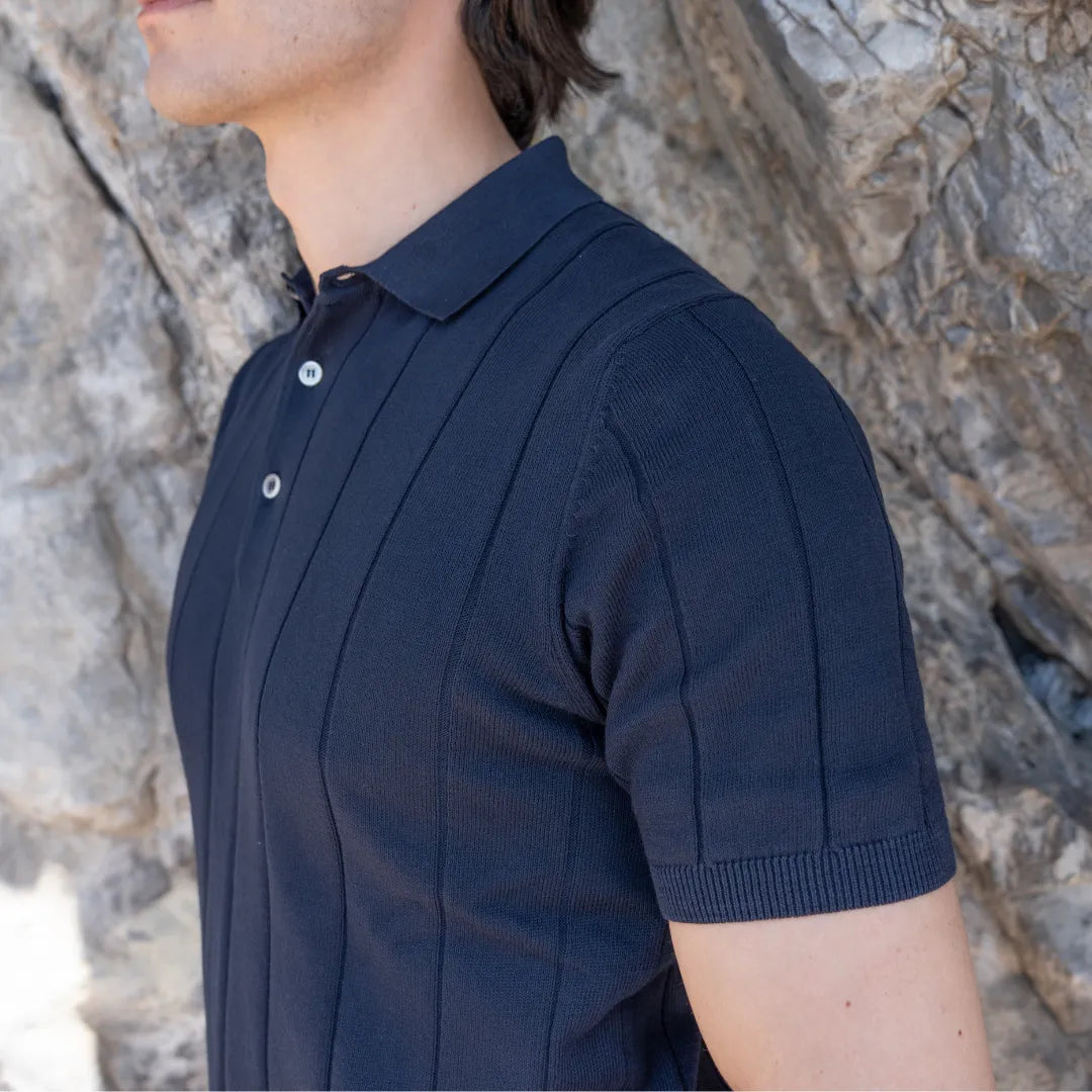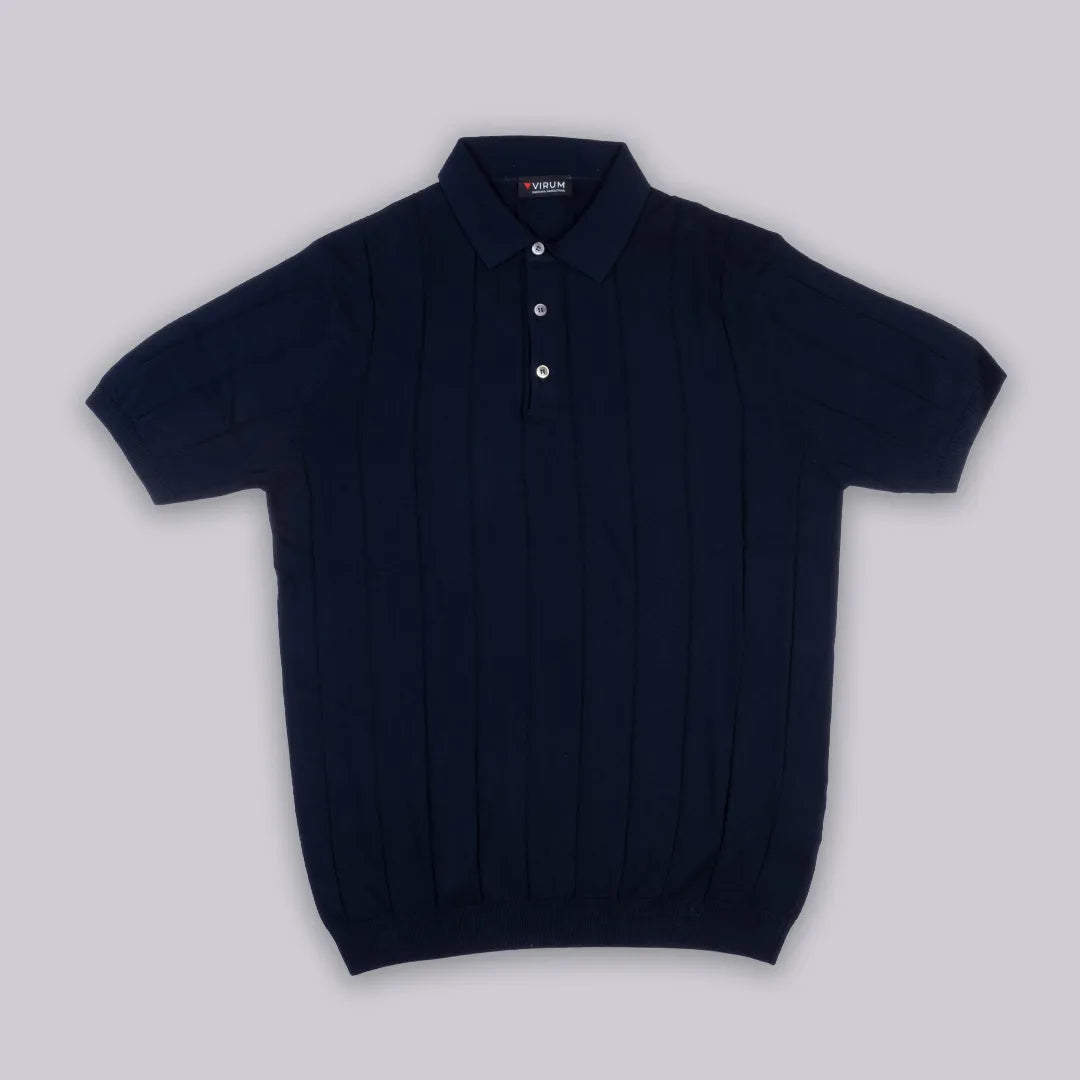Polo in Cotone Calato a Coste Blu Navy - Made in Italy