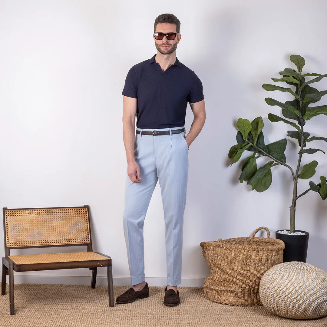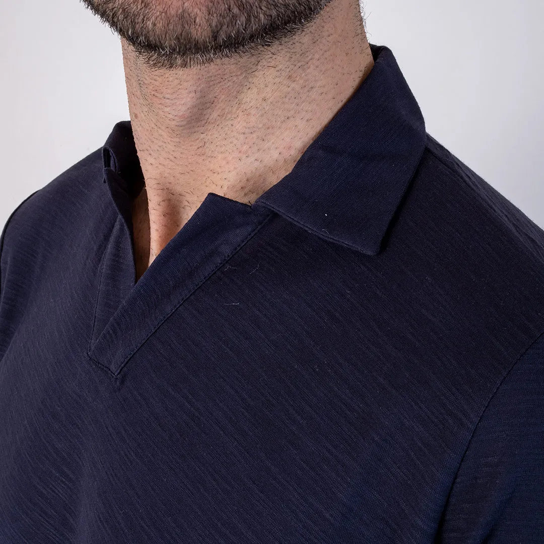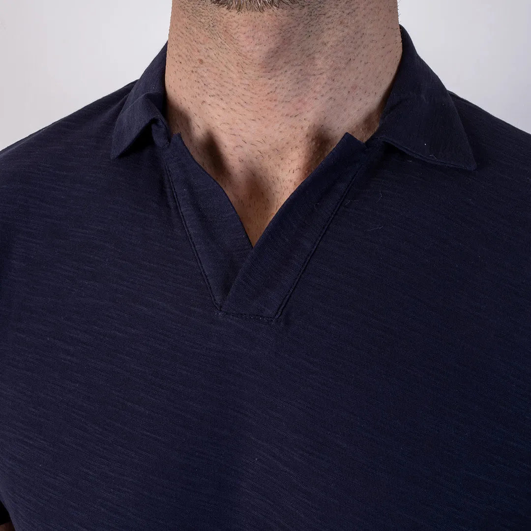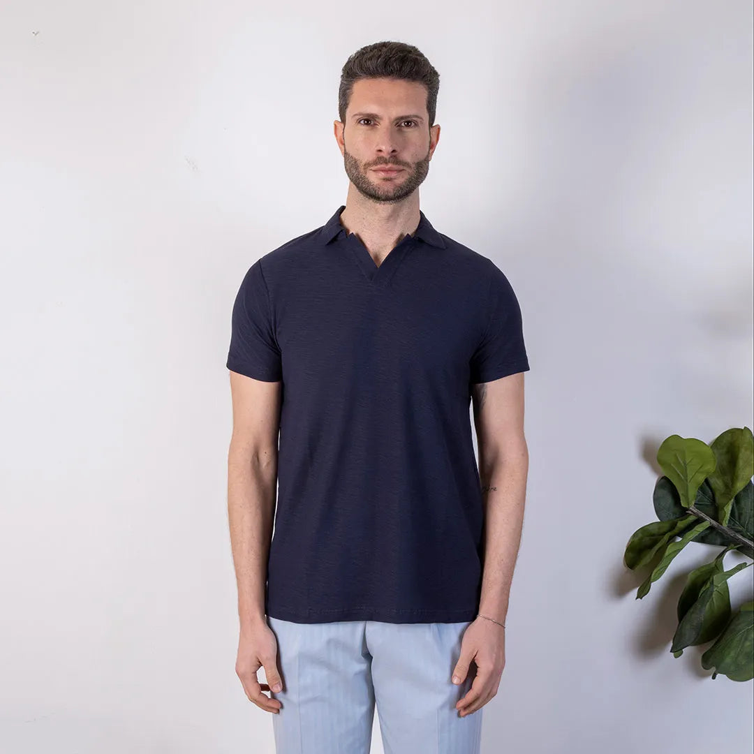 Fresh, light and essential. This beige cotton jersey polo with derby collar is designed to offer comfort and style throughout the day. The slub effect gives depth to the texture of the fabric, while the natural elasticity ensures freedom of movement and an impeccable fit.