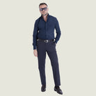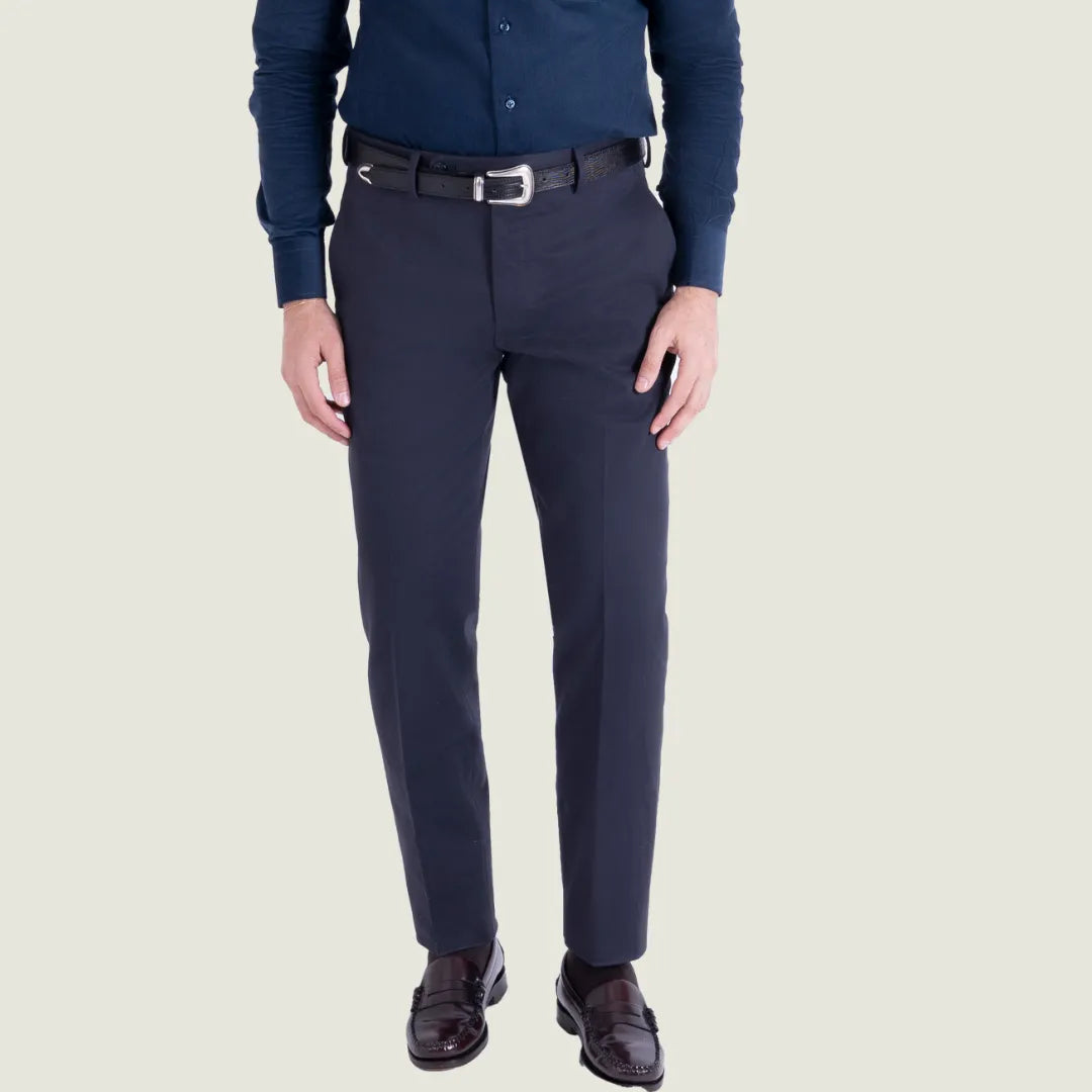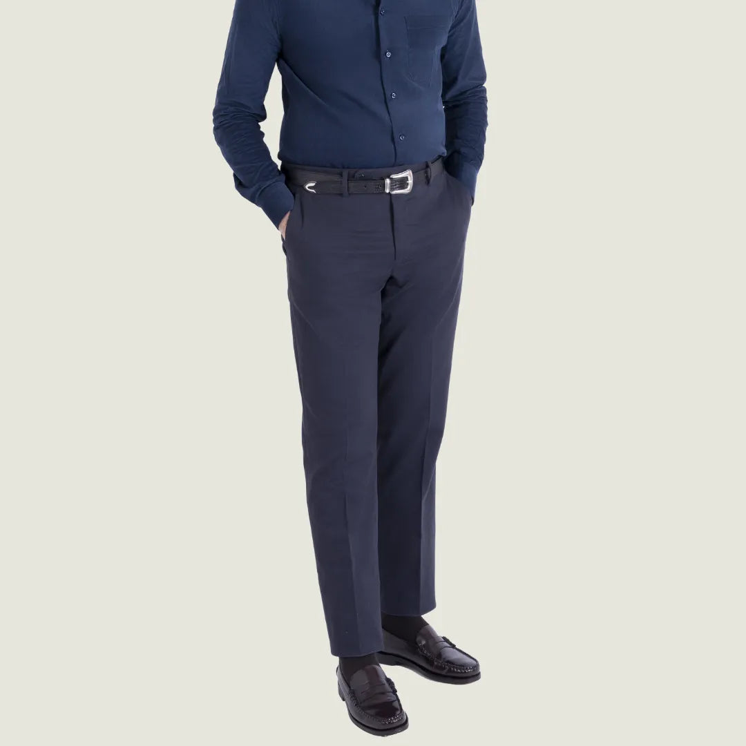 Pantalone Sartoriale Chino in Caldo Cotone Senza Pince – Blu – Made in Italy
