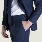 È composto da giacca monopetto due bottoni e pantalone Vesuvio con una pence. La giacca è realizzata con lavorazione semi intelata, priva delle adesivature tipiche dei capi industriali: la tela interna in lana e crine permette alla struttura di modellarsi progressivamente sul corpo, garantendo armonia, leggerezza e traspirabilità anche nelle giornate più impegnative.