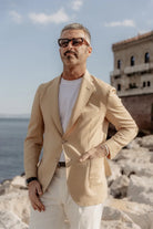 Giacca Destrutturata Hopsack Beige in Pura Lana Vitale Barberis Canonico - Made in Italy