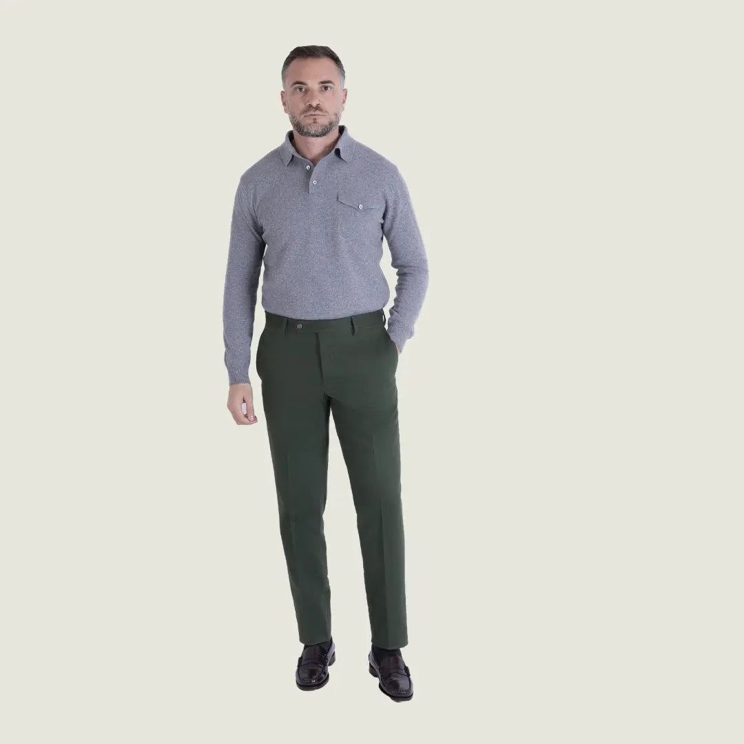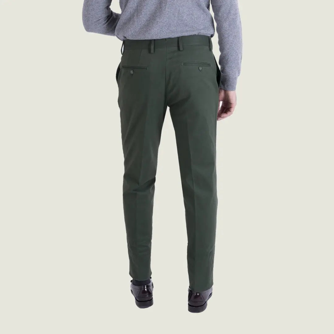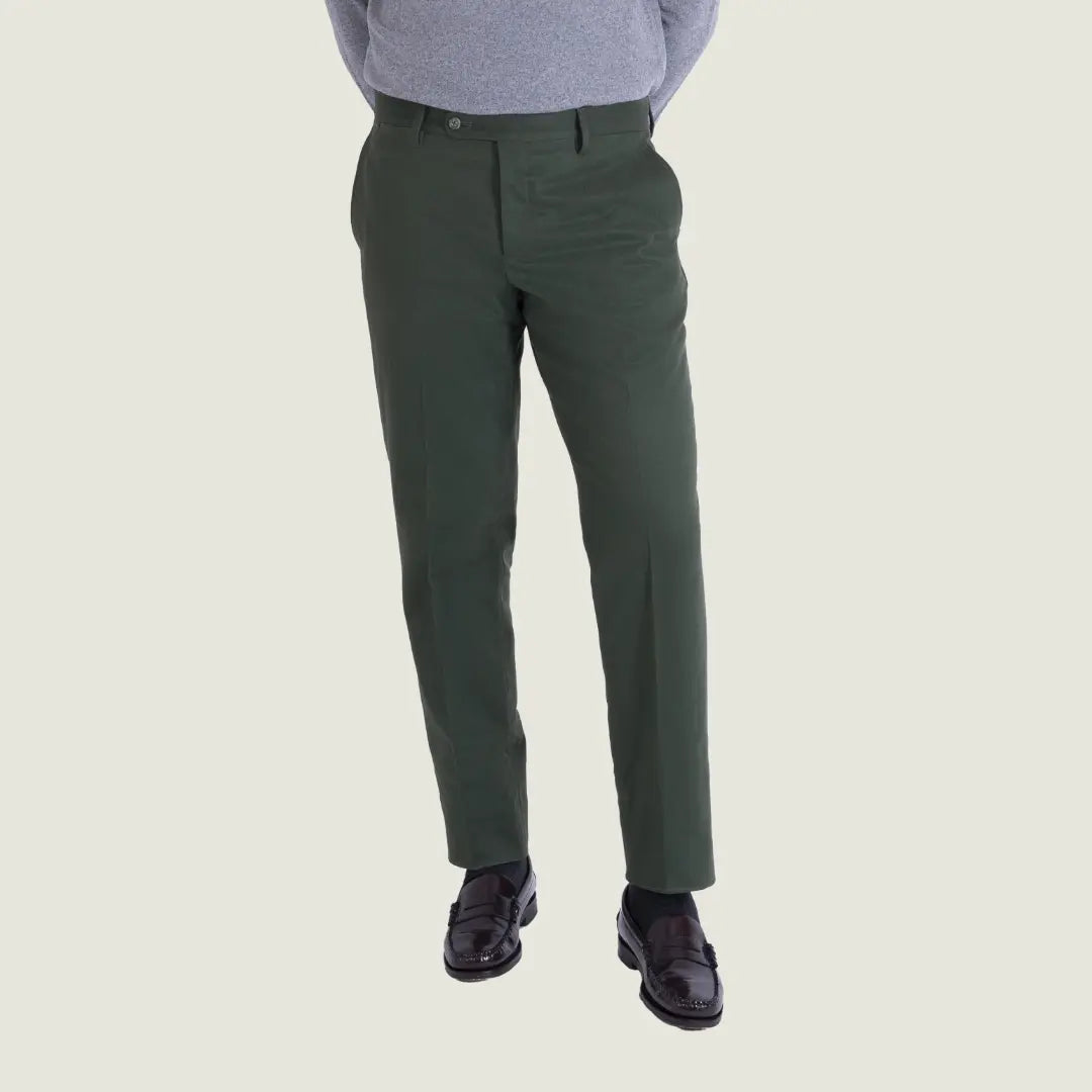 Pantalone Sartoriale Chino in Caldo Cotone Senza Pince – Verde – Made in Italy