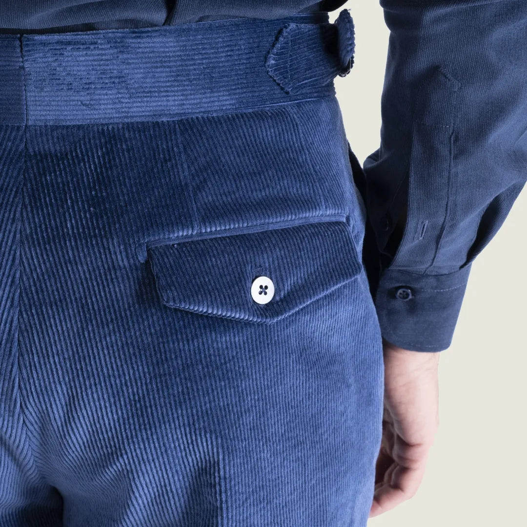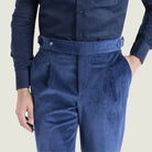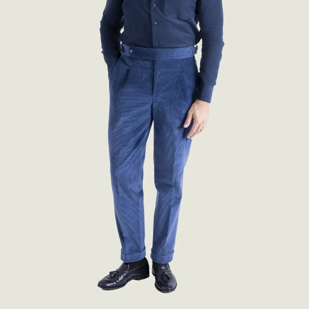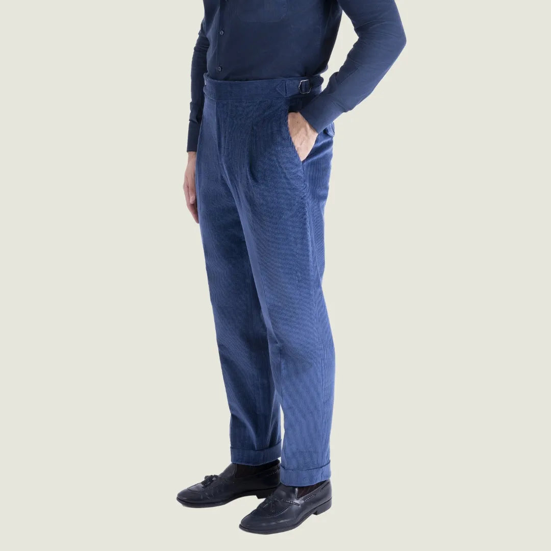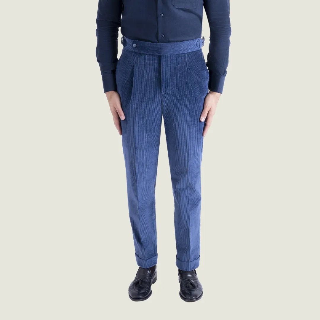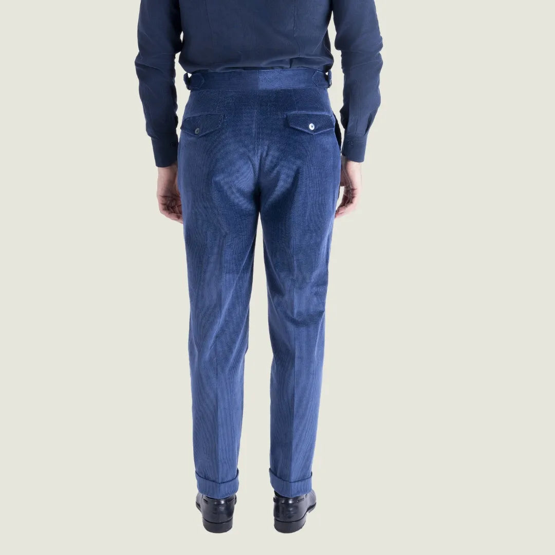 Pantalone Sartoriale Oyster in Velluto Millerighe Blu con Una Pince - Made in Italy