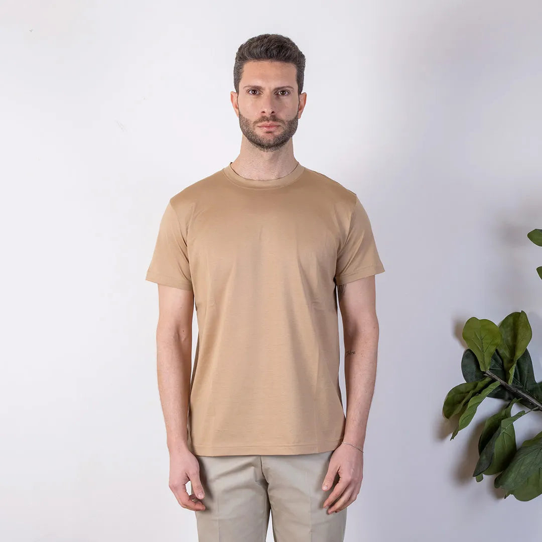L’abbiamo pensata per chi non vuole scendere a compromessi tra eleganza e comodità, soprattutto quando le giornate iniziano a scaldarsi. È una T-shirt in 100% Filo di Scozia, un tessuto raffinato che rende il capo leggero, lucente e resistente, ideale per la stagione primavera-estate. Un capo di lusso, perfetto da indossare anche in occasioni più formali: sotto una giacca per un look sofisticato o da solo per un tocco di informalità elegante. Un vero passe-partout per chi apprezza uno stile discreto e ricercato.